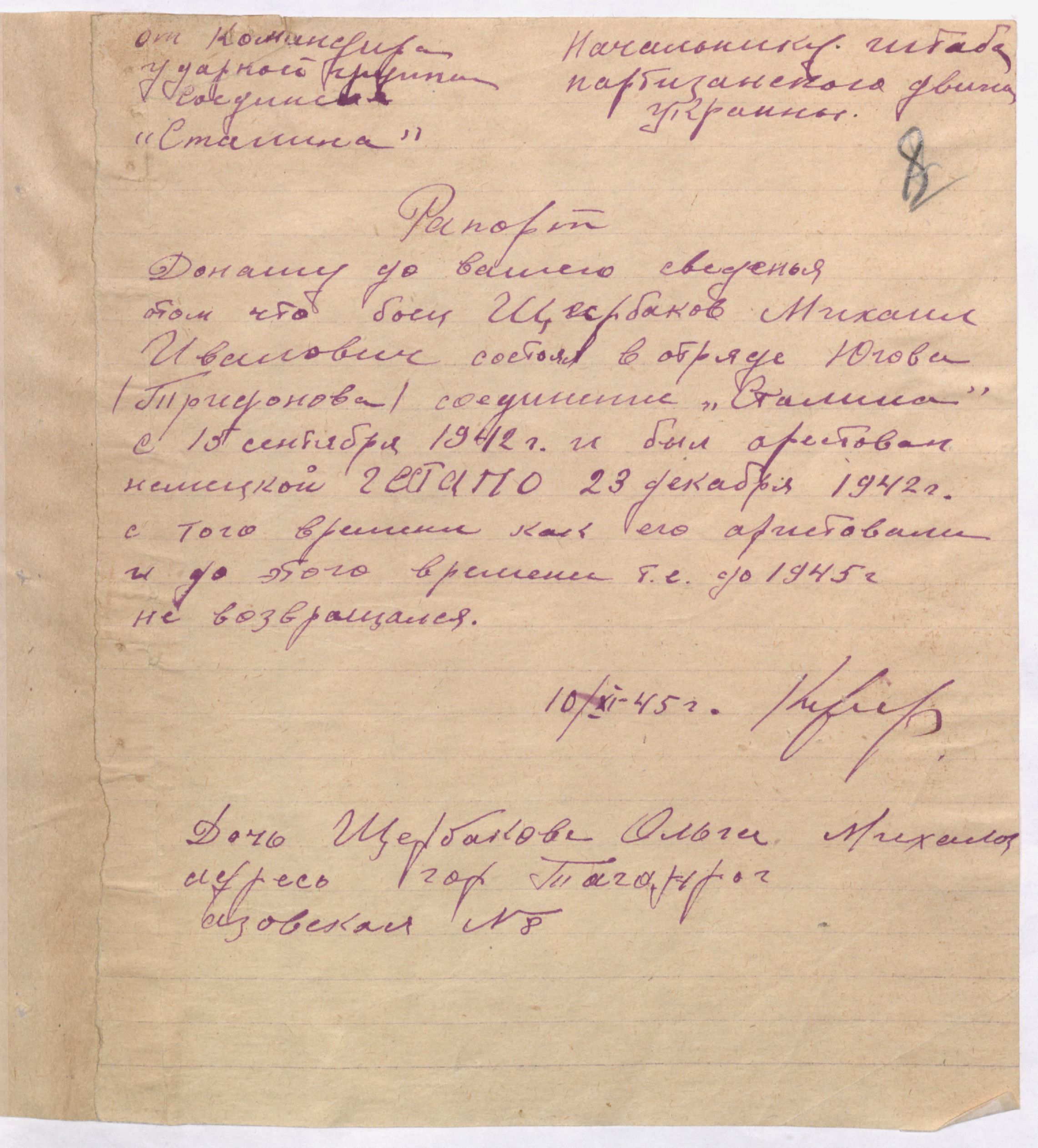 В состав отряда Югова и входил сам герой войны, о котором мы ведем рассказ - Михаил Иванович Щербаков, его несовершеннолетние дети, друзья и знакомые.