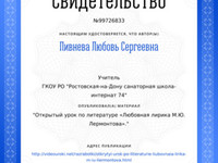 Свидетельство Открытый урок по литературе «Любовная лирик...
