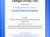 Свидетельство Рабочая программа внеурочной деятельности ...