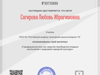 Свидетельство Цикл классных часов для 5 класса по духовн...
