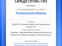 Свидетельство Охрана здоровья школьника на первом году об...