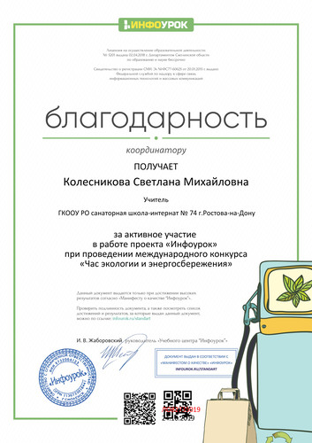» Благодарность проекта infourok.ru №ЛО82735019
