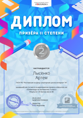 Лысенко Артем - Диплом 2 степени