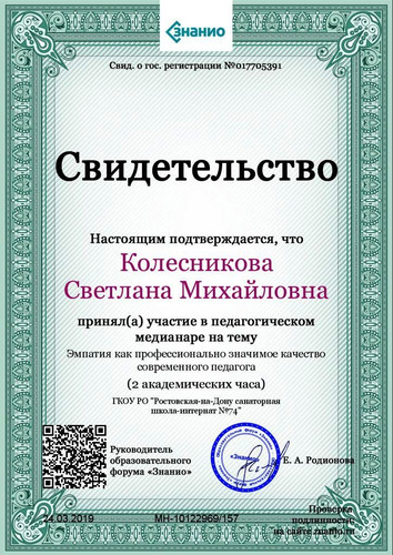 » Свидетельство Эмпатия как профессионально значимое качест...