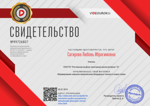 » Свидетельство Формирование навыков правописания безударны...