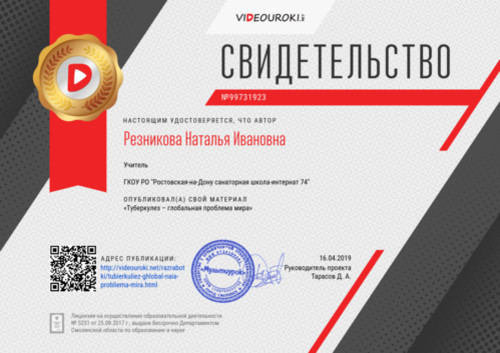 Свидетельство Туберкулез – глобальная проблема мира